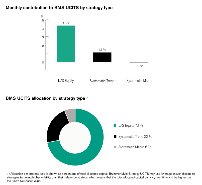 As of December 1st, BMS UCITS’s portfolio managers added two new market neutral long/short equity teams, one focusing on the healthcare sector and one specialising in listed real estate on the European and Canadian markets. The risk allocated to the new strategies was reallocated from the long/short equity and systematic macro buckets.